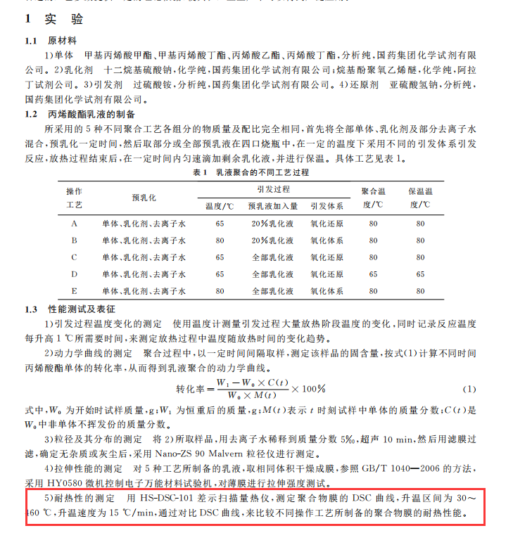 乳液聚合不同工藝及其對聚合物性能影響分析乳液聚合不同工藝及其對聚合物性能影響分析上海和晟 HS-DSC-101 差示掃描量熱儀